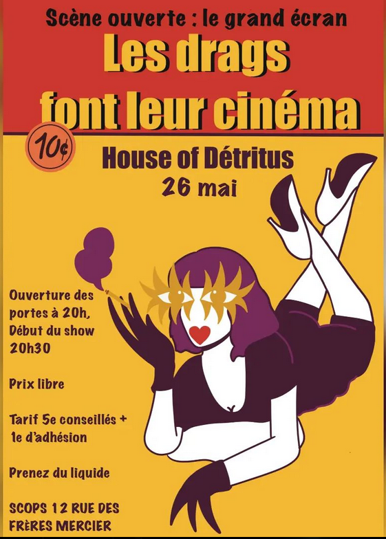 EntrĂ©e prix conseillĂ© 5 euros + adhĂ©sion Scops Pensez Ă ramener de la monnaie pour payer l'entrĂ©e, le bar et tipser les performeureuses Ă la fin du show đ