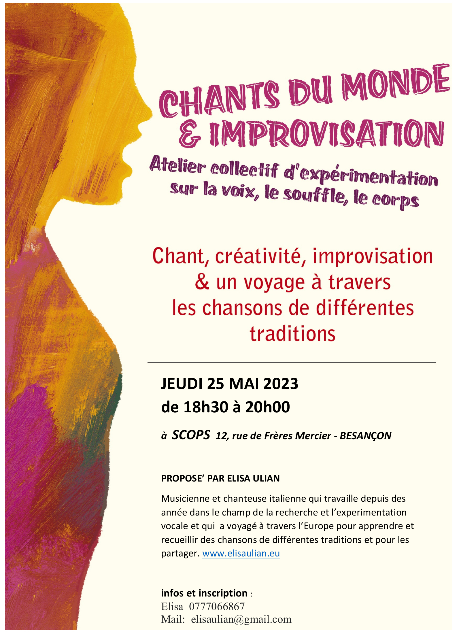 Jeudi 25, 18h30-20h : Chant du monde & Improvisation - Atelier créatif